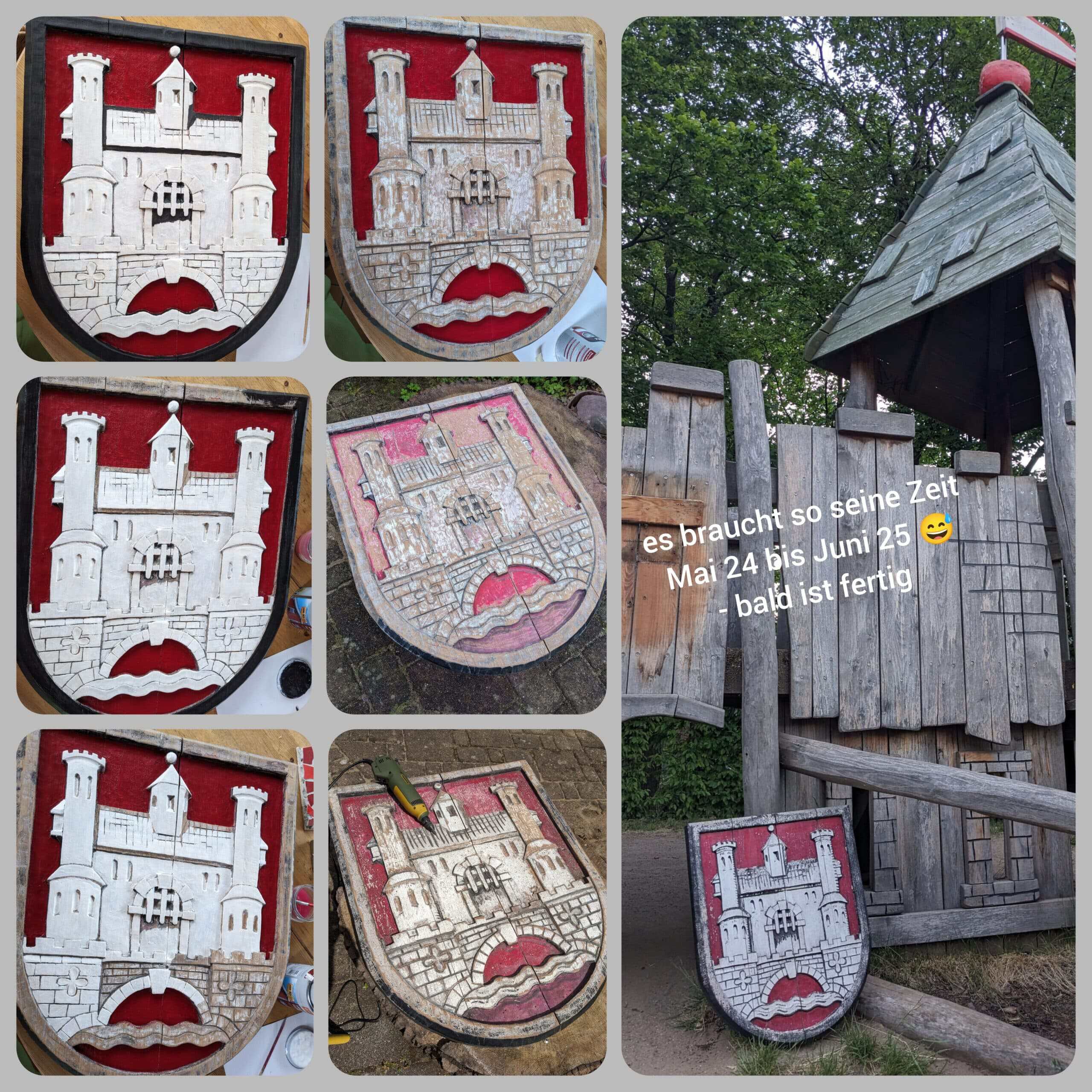 … neben der Planung für ein nächstes Projekt im JestePark, bleibt das Auffrischen der Farben nicht aus. Das Jesteburg Wappen darf bald wieder an seinen Platz an die JesteBurg 🤗