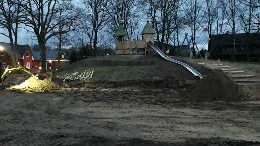 Das große Werkeln geht weiter – U3 Doppelschaukel, U3 Hangrutsche, Schilf-Gras-Stelzenparcour, 3er Kombi-Mega-Schaukel Firma Besendahl gibt ihr bestes
