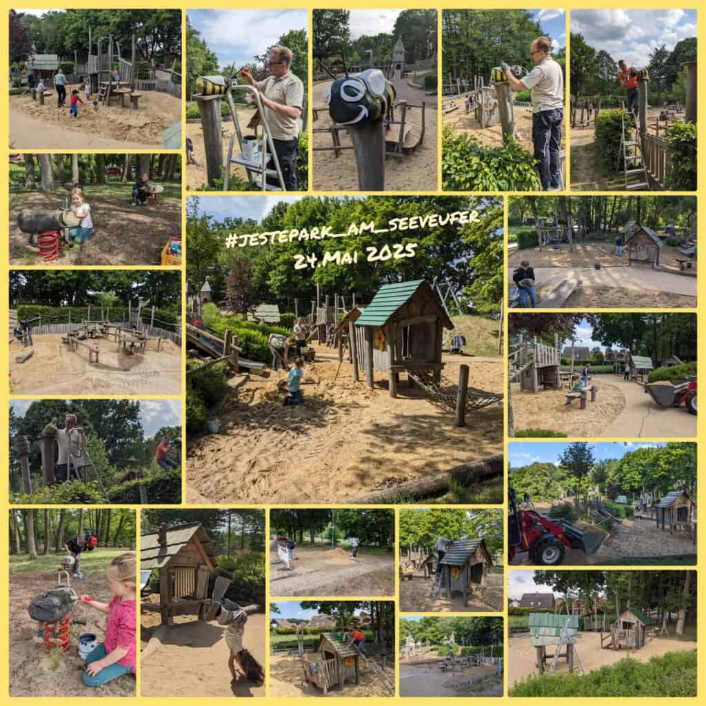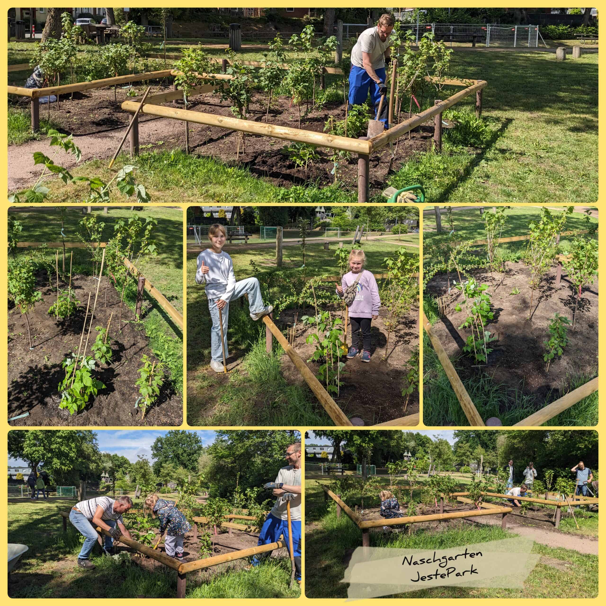 Und auch dem Naschgarten im JestePark haben wir uns heute zwischen den Regenschauern gewidmet, ein zwei Himbeerpflanzen hatten es in den ersten drei sehr trockenen Wochen nicht geschafft. Aber kein Problem, jetzt ist mit Ersatz nachgeholfen.