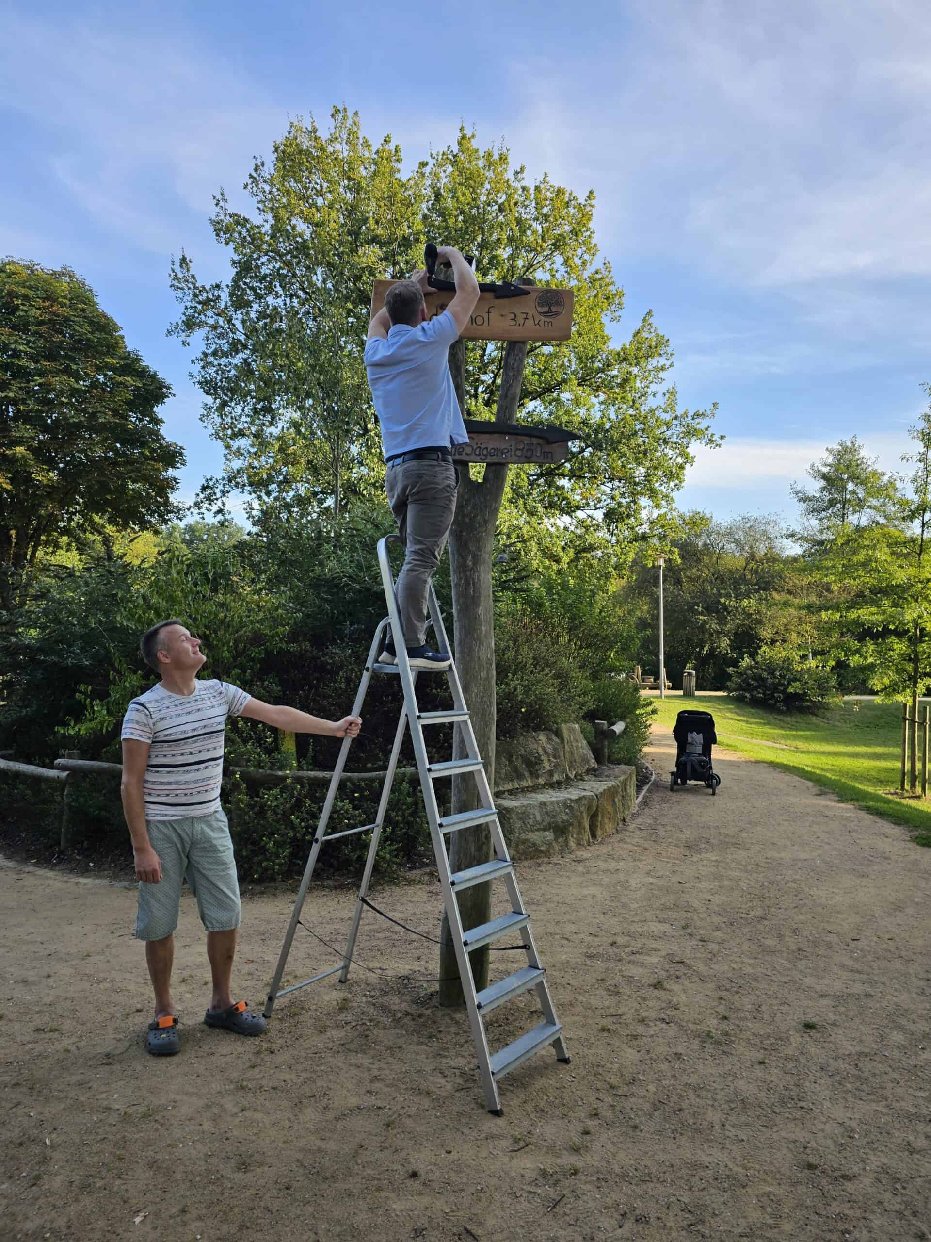 Wir haben uns gedacht, ein schönes Schild als Wegweiser ist eine tolle Sache – insbesondere auch um unseren Förderverein und unseren Spielplatz mit einer Spende zu unterstützen.